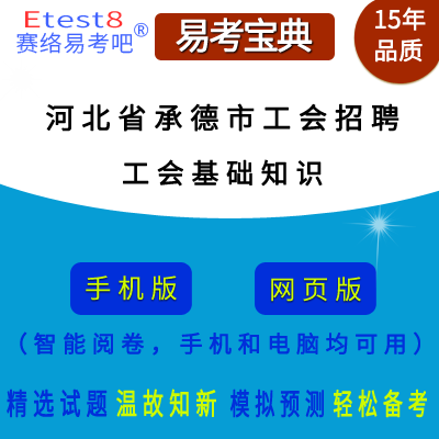 2025年河北省承德市工会系统招聘社会工作岗位人员(工会基础知识)在线题库是易考吧在线题库系统之一,是专门为参加“河北承德市工会社会工作者招聘考试”的朋友量身定做的自我测试系统,是个人、培训学校进行考试前训练、备考冲刺的提分技巧考试平台,题型丰富,图文并茂,内容全面,题库设计符合考试新大纲,海量试题。软件包括了富有价值的模拟考场,有计时打分等功能,就像亲身体会考试一样。软件中的题型和题量详细介绍如下:
