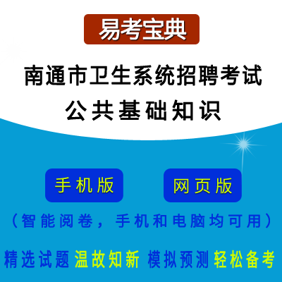 2026年江苏省南通市卫生系统招聘考试(公共基础知识)在线题库是易考吧在线题库考试系列软件之一,是专门为参加“江苏卫生系统招聘考试”的朋友量身定做的自我测试系统,是个人、培训学校进行考试前训练、备考冲刺的提分技巧考试平台,题型丰富,图文并茂,内容全面,题库设计符合考试新大纲,海量试题。软件包括了富有价值的模拟考场,有计时打分等功能,就像亲身体会考试一样。软件中的题型和题量详细介绍如下: