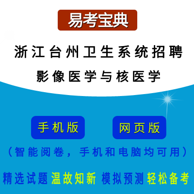 2026年浙江省台州市医疗卫生系统招聘考试(影像医学与核医学)在线题库是易考吧备考复习在线题库之一,是专门为参加“浙江省台州市医疗卫生系统招聘考试”的朋友量身定做的自我测试系统,是个人、培训学校考前进行提分训练、备考冲刺的训练平台,该题库题型丰富,图文并茂,内容全面;题库设计符合考试新大纲,题库包括了富有价值的模拟考场,有计时打分等功能,就像亲身体会考试一样。题库中的题型和题量详细介绍如下: