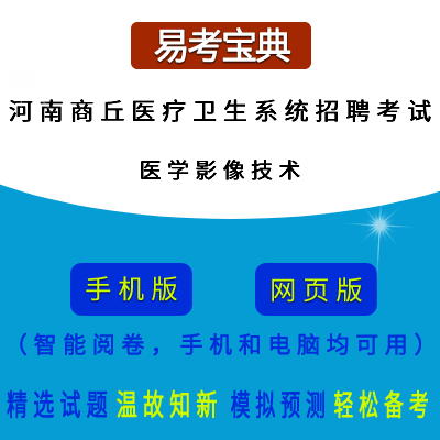 2026年河南省商丘市医疗卫生系统招聘考试(医学影像技术)在线题库是易考吧备考复习在线题库之一,是专门为参加“河南省商丘市医疗卫生系统招聘考试”的朋友量身定做的自我测试系统,是个人、培训学校考前进行提分训练、备考冲刺的训练平台,该题库题型丰富,图文并茂,内容全面;题库设计符合考试新大纲,题库包括了富有价值的模拟考场,有计时打分等功能,就像亲身体会考试一样。题库中的题型和题量详细介绍如下: