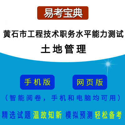 2026年湖北省黄石市工程技术职务水平能力测试(土地管理)在线题库是易考吧备考复习在线题库之一,是专门为参加“湖北省黄石市工程技术职务水平能力测试”的朋友量身定做的自我测试系统,是个人、培训学校考前进行提分训练、备考冲刺的训练平台,该题库题型丰富,图文并茂,内容全面;题库设计符合考试新大纲,题库包括了富有价值的模拟考场,有计时打分等功能,就像亲身体会考试一样。题库中的题型和题量详细介绍如下: